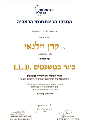 תואר ראשון L.L.B במשפטים מאוניברסיטת רייכמן